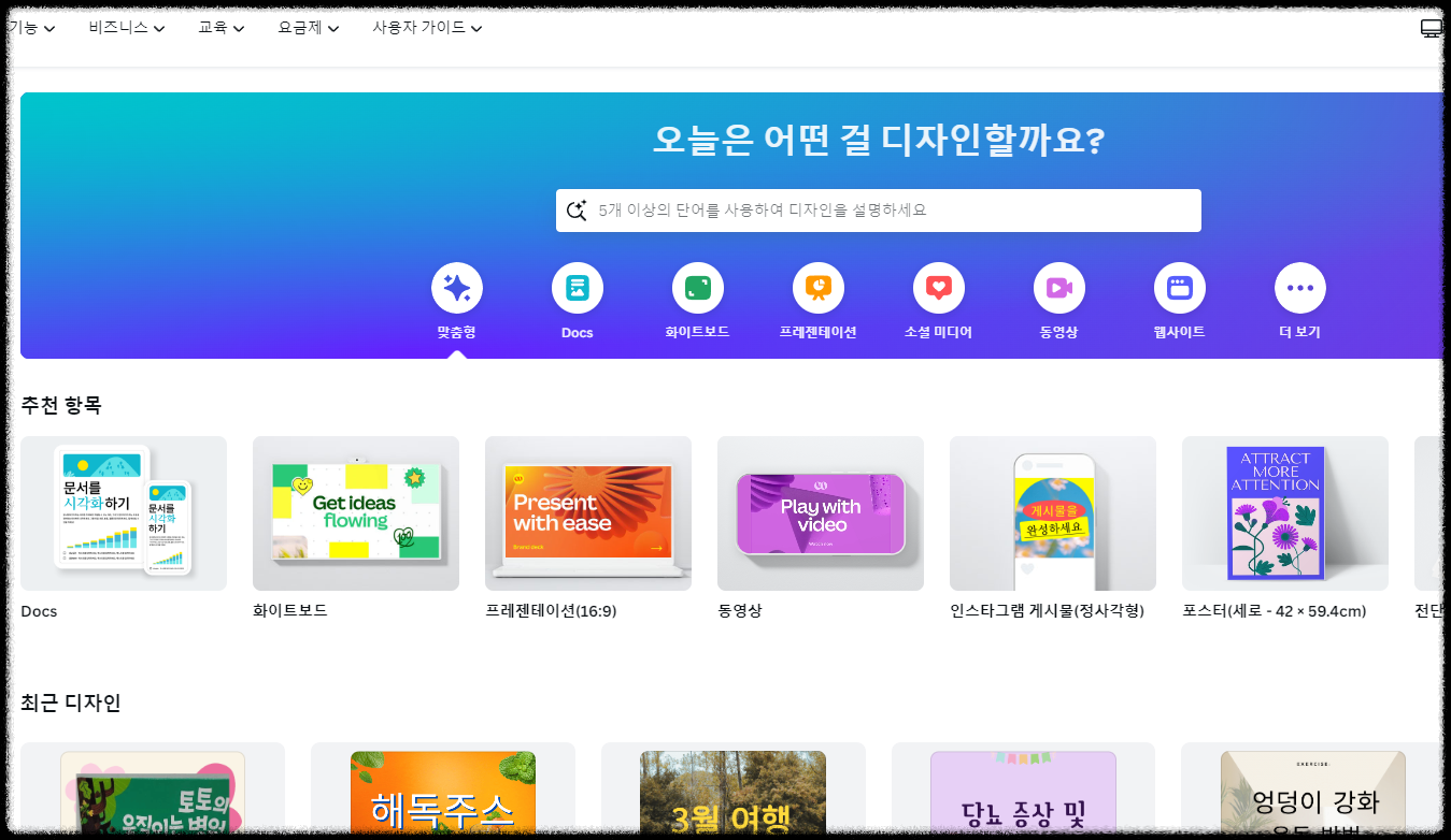 캔바가 좋은 점은 쉽고 간편한 아이콘 설명이 가능하고 무료템플릿 디자인이 많다는 것입니다. 일러스트나 사진 이미지 등을 내가 원하는 것을 선택할 수 있습니다. 워터마크 없이 디자인 사용이 가능하고 제한 없이 디자인 제작이 가능하며 작업을 하다가 전기가 나가면 따로 저장하지 않아도 pc, 노트북, 앱으로도 사용이 가능합니다. 마지막으로 공유 제작이 가능하다는 것입니다.